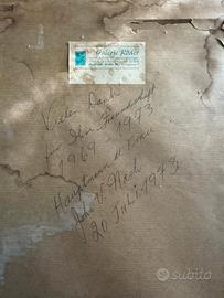 Il dipinto è datato con precisione al 20 luglio 1973, come attestato da una dedica manoscritta in lingua tedesca sul retro, elemento che conferisce unicità e interesse collezionistico.