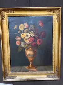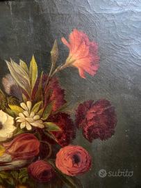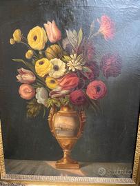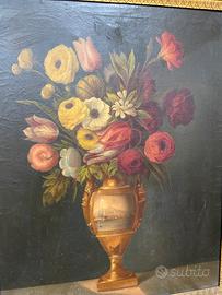 Dipinto in olio su tela “natura morta” d’epoca impero misura della tela 52x67 alla cornice arriva a 65x80
