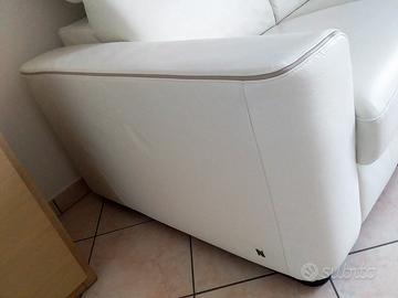 Vendo nuovissimo divano letto 2 posti, con chaise longue (sinistra) con ampio contenitore. In vera e pregiata pelle, color bianco. Braccioli con eleganti profili color grigio fumo. Piedini in legno color wenge. Poggiatesta regolabili.