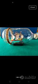 nave di legno in bottiglia vintage da collezione, il tappo di sughero di chiusura reca una leggera erosione come da foto