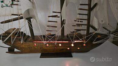 Nave lunga 80, alta 62cm, larga 20cm, con luce colorata con spina 220v. Preferibile Consegna a mano