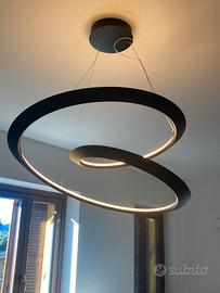 La collezione Kepler è realizzata in estruso di alluminio verniciato, la cui linea continua è ottenuta attraverso un processo di lavorazione tridimensionale sviluppato da Nemo. Disegnata alla base del principio matematico del nastro di Möbius. Diffusore in tecnopolimero opaco.. in vendita uno nero a €900 ed uno colore oro a €1300. I lampadari sono stati montati per 3 mesi da nuovi e poi imballati a seguito di un trasloco. Cone nuovi.