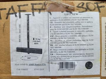 Il supporto TV a soffitto New Lift e’ una staffa che permette di montare a soffitto uno o due (uno per lato) televisori con i supporti Slim 600/Slim 800 o Slim 600 TILT/Slim 800 TILT. Questa staffa permette una regolazione dai 60 ai 100 cm di altezza e una rotazione di 360.