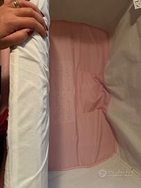 Vendo next to me Chicco rosa completa di materasso copri materasso e borsa trasporto. Unico difetto segnalato in foto risolvibile con smacchiatore. No spedizione
