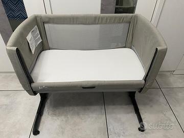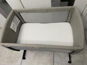 La culla co-sleeping Roomie Go può essere utilizzata dalla nascita fino a 9 kg. Regolabile in altezza su 5 livelli, anche su un solo lato per prevenire le coliche. Misura da aperta: L 90,5 x P 69 x H 74-81 cm.