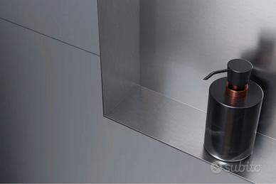 Nicchia da parete in acciaio inox senza bordo con faretti LED - 20 x 60 x 10 cm. Prezzo di acquisto 157€.