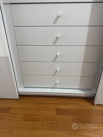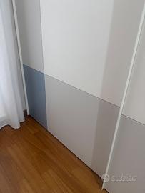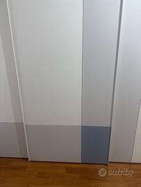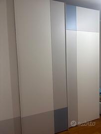 Vendesi armadio 3 ante scorrevoli in 3 colori con interno chiaro e pois da bambino, con all’interno 7 cassetti, 4 tubi appendiabiti e 7 mensole marchio Nidi