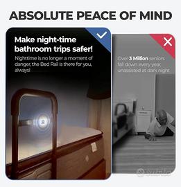 Informazioni su questo articolo Supporto letto compatto e affidabile: fornendo un supporto stabilizzante, la sponda letto compatta nimood è perfetta per anziani e persone con mobilità ridotta. La sponda letto compatta consente alle persone di sedersi e alzarsi in modo indipendente con maggiore facilità, riducendo al minimo il rischio di cadute e nuovi infortuni Dotato di illuminazione di movimento: la luce di movimento in dotazione consente di illuminare l'ambiente circostante quando ci si alza di notte, in modo da non dover preoccuparsi di inconvenienti al buio. Basta rimuovere la lampada e si illuminerà ovunque si vada. Non preoccuparti di accendere le luci e disturbare i familiari che riposano intorno a te Impugnatura ergonomica imbottita: l'impugnatura imbottita in schiuma è angolata di circa 30 gradi rispetto alla posizione di sonno. Questo design ergonomico può modificare la direzione della forza del polso per ridurre la forza necessaria per gli utenti in posizione di sonno quando si alzano. Un'impugnatura curva aiuta anche a mettersi a letto modificando la posizione di presa Installazione in un minuto senza attrezzi: viene fornita parzialmente preassemblata, quindi chiunque può installarla facilmente. Tutto ciò che serve è collegare i tubi e fissare la sponda al letto. Non sono necessari altri assemblaggi o utensili di alcun tipo La regolazione dell'altezza si adatta meglio a molti tipi di letto: la regolazione dell'altezza da 40 a 56 cm si adatta meglio ai materassi per una maggiore sicurezza e una vestibilità più personalizzata. può essere utilizzato su letti singoli, singoli XL, matrimoniali, queen e king size (non è consi
