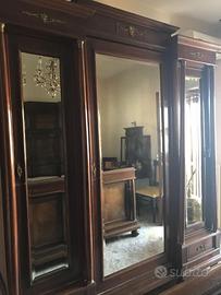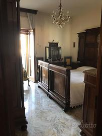 Tavolo e sedie liberty, vetrina liberty, divano metri 280 chiaro, divano tre posti verde scuro con due poltrone della stessa tipologia. Camera letto completa fine 800. Tutto ben conservato.