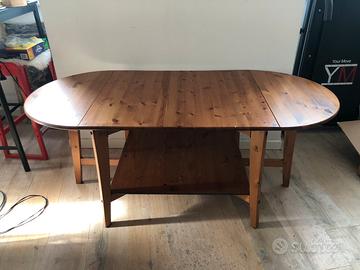 Tavolo da caffè allungabile LEKSVIK Ikea, in legno, fuori produzione. Misure: altezza 58 cm, profondità 70 cm, lunghezza minima 70 cm/massima 149 cm.