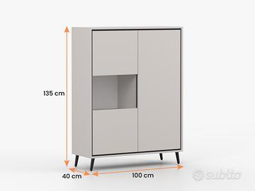 Trasforma il tuo spazio living in un ambiente di raffinata eleganza con la collezione Johannesburg. Questo set di mobili eleganti in stile moderno unisce la funzionalità di contenimento alla possibilità di esporre oggetti dal punto di vista estetico rappresentano la perfetta combinazione di funzionalità e design minimalista. Decorato in una delicata tonalità cashmere, si adatta perfettamente a diversi contesti, e la sua forma minimalista è enfatizzata da inserti neri e sottili gambe in metallo dal design minimalista, che privilegia la semplicità e la modernità. Il sistema push-to-open consente di aprire comodamente i frontali senza maniglie. Misure: Mobile porta TV a 3 ante , gambe in metallo nero e sistema PUSH TO OPEN: lunghezza 180 cm – altezza 55 cm – profondità 40 cm Vetrina Bar 2 ante dotata di 1 ripiano aperto , 5 ripiani chiusi , gambe in metallo nero e sistema PUSH TO OPEN: lunghezza 100 cm – altezza 135 cm – profondità 40 cm Vetrina alta 1 anta in vetro dotata di 5 ripiani , gambe in metallo nero e sistema PUSH TO OPEN: lunghezza 50 cm – altezza 185 cm – profondità 40 cm Cassettiera dotata di 2 ante con ripiani , 3 cassetti , gambe in metallo nero e sistema PUSH TO OPEN: lunghezza 150 cm – altezza 100 cm – profondità 40 cm Tavolino da caffè dotato di 2 vani portaoggetti , gambe in metallo nero e sistema PUSH TO OPEN: lunghezza 90 cm – altezza 45 cm – profondità 65 cm Materiali robusti e di qualità: pannello laminato spesso 16 mm Maniglie in PVC bordi rifiniti completamente con impiallacciatura in PVC Pulizia: utilizzare acqua tiepida e detergenti neutri, usando panni delicati antigraffio. Asciugare tutto subito appena si è finito di pulire. Desideri ulteriori informazioni? Contattaci al numero (anche WhatsApp), siamo a tua disposizione!