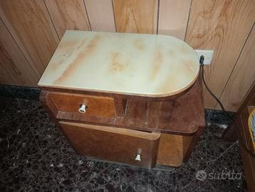 In vendita un affascinantecomodinovintage, un autentico pezzo dimodernariatoche cattura l'eleganza senza tempo dello stile Art Déco italiano degli anni '40.