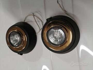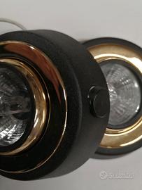 nr 2 faretti spot per illuminazione con lampadine alogene dicroiche orientabili diametro 9,8 cm esterno nero interno dorato con vetro di protezione ed interruttore laterale, perfetti, nuovi mai usati in blocco 10e non spedisco