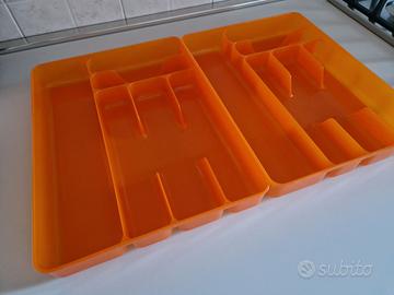 nr. (2) porta posate cucina per cassetto in plastica color arancio dimensioni 24x33x4