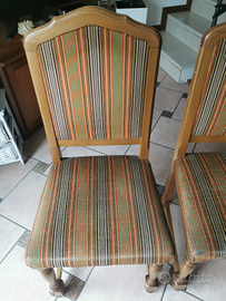 Vendo, per fare spazio, nr 6 sedie sala da pranzo /cucina/taverna , usate in buonissimo stato, vero legno, robuste e Comodissime , il tessuto è velluto. Tutte per 90 euro, se no 15 euro l'una. Ho in vendita anche un tavolo allungabile in ciliegio, se comprati insieme faccio 170 di tutto.