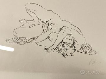 Litografia che rappresenta un Nudo , firmato Corrado Cagli , Artista Italiano ( 1910- 1976 ). La Litografia è su carta del 1974 , la cornice è d'orata e coeva. Le Misure sono: Altezza cm. 44. Larghezza cm. 33.