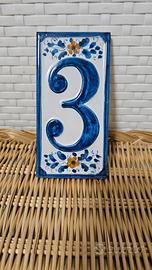 Mattonella in ceramica decorata per Numero Civico 3. Ottime condizioni.