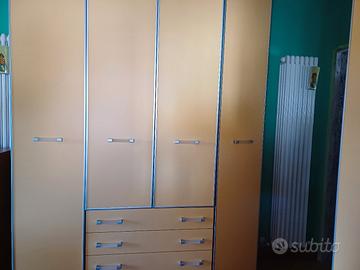 Camerette per bambini di ottima qualità,composta da due lettini con materassi,due armadi di cui uno ad angolo misura cm.180 per cm.160 e uno lineare a quttro ande misura 220 cm. con cassettiera da 4 tirett da cm.120.E compreso anche da due scrivanie con sedie un settimino con sette cassetti e strutture da esposizione in tutti e due i lettini con cassettiere a muro.Vi è anche la possibilità di acquistarle separatamente.