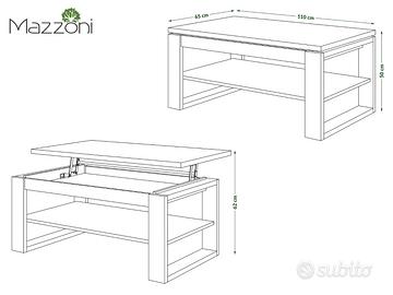 La nuova versione del modello classico, perfetto come tavolino da soggiorno e come piano alzabile per lavorare al PC o consumare un pasto comodamente. Tutto grazie al meccanismo che consente di sollevare il piano del tavolino, nascosto nell'apposito comparto inferiore, che può essere utilizzato anche per riporre le cose più necessarie.