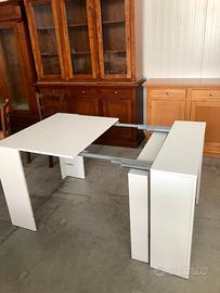 PROPONIAMO UNA NUOVA CONSOLLE NOBILITATO DI MISURA 90x50 ALLUNGABILE CON 4 ALLUNGHE DA 45 IN FINITURA BIANCO SPAZZOLATO.