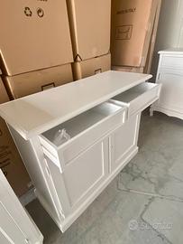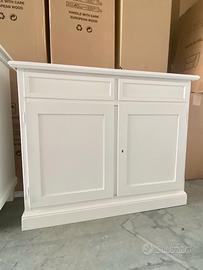 PROPONIAMO UN BELLISSIMA CREDENZA CON 2 ANTE E 2 CASSETTI, REALIZZATA DI VERO LEGNO IN FINITURA BIANCO LACCATO.