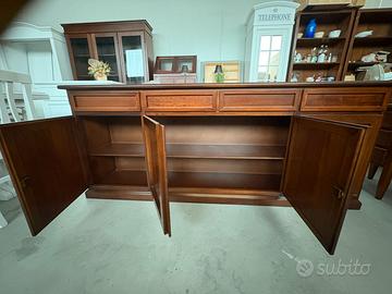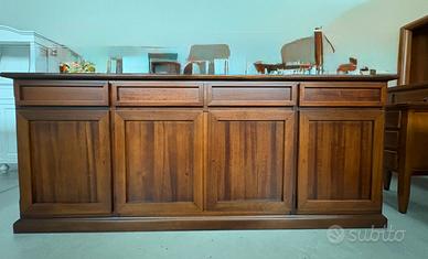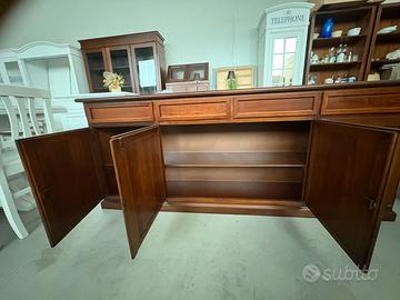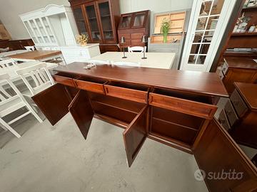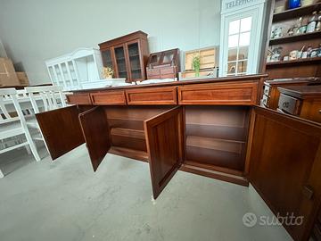 PROPONIAMO UNA BELLISSIMA CREDENZA CON 4 ANTE E 4 CASSETTI, realizzata di vero legno in finitura noce.