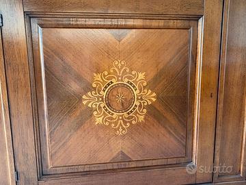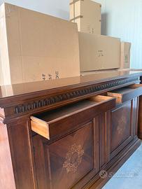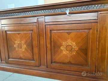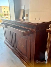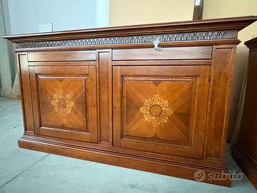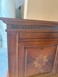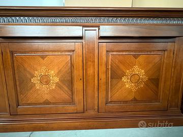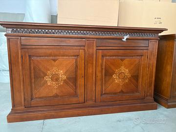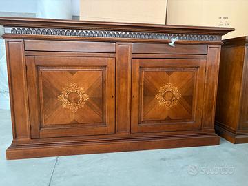 PROPONIAMO UN BELLISSIMO CREDENZONE CON 2 ANTE E 2 CASSETTI, INTARSIATO E INTAGLIATO, REALIZZATO DI VERO LEGNO MASSELLO IN FINITURA BASSANO