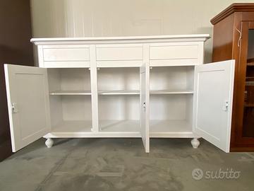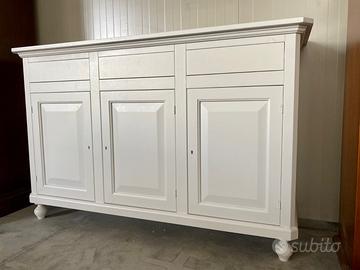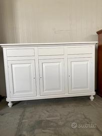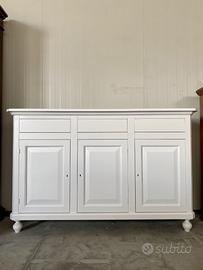 PROPONIAMO UNA BELLISSIMA CREDENZA CON 3 ANTE E 3 CASSETTI, realizzata di vero legno in finitura bianco laccato.