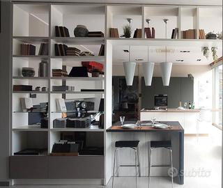 CUCINA DI SCAVOLINI- mod. Liberamente PREZZO DI LISTINO eur 16987,00 ! PREZZO PROMOZIONALE DEFINITIVO per rinnovo mostra : eur 8400,00 I.V.A. Inclusa La cucina è nuova, scontata per rinnovo locali showroom e visionabile senza impegno. POSSIBILITA' DI ADESIONE AL BONUS MOBILI (RECUPERO 50%). ESCLUSI ALLACCIAMENTO IDRAULICO, TRASPORTO E MONTAGGIO (da valutare, eventualmente applichiamo prezzo particolare) -DIMENSIONI: L.345x279 (mobili cucina) Prof.60/93 (penisola) h.210 cm - Libreria: h.296 L.470 prof.34 cm. -PIANO LAVORO: laminato Gravel Annapurna spess.4cm con schienale h.35cm -FINITURA ANTA: basi decorativo Rovere Actual, pensili decorativo Vertigo, libreria decorativo bianco -ACCESSORI: pattumiera,tappetini,portaposate,accessori sottopensili 'tonda' magnet. -ELETTRODOMESTICI: Lavello Franke 2V 'BFG620' nero fragr. Miscelatore Nobili 'TW00117CR' Inox Lavastoviglie Electrolux 'ESL5213LO' P.cottura Neff T66S66N0 4 fuochi vetro nero (attenzione! diverso da quello presente in foto) Forno Samsung NV73J7740RS Cappa Faber Divina da 60cm integrata Frigorifero Electrolux 'ENN2872BOW' Inclusi n.2 sgabelli Endless nero / cromo