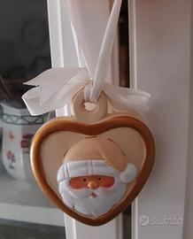 Decorazione natalizia da albero a forma di cuore con Babbo Natale | bianco e oro, nuova