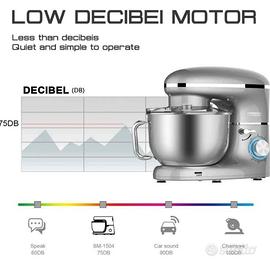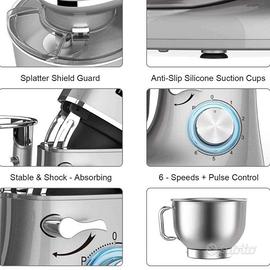NUOVA Impastatrice Planetaria Professionale 1500W ,Basso Rumore Robot da Cucina 5.5 Litri, 6 Velocità Automatica Multifunzione Mixer