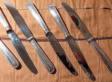 N. 12 Coltelli Christofle da tavola in alpacca mod. Albi lunghezza 24cm. Comprensivi di custodia in panno. comprati negli anni 70, usati una decina di volte, in buono stato. Peso kG. 1,20 Provenienti Da successione materna. vendo