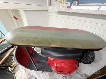 Oggi vi proponiamo vespa rossa con tavolo aperitivo sopra di essa ottima da centro stanza per bere o mangiare qualcosa in compagnia… la