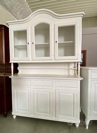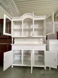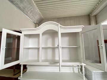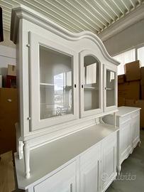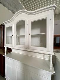PROPONIAMO UNA BELLISSIMA VETRINA A 3 ANTE E 3 CASSETTI, REALIZZATA DI VERO LEGNO IN FINITURA BIANCO LACCATO.