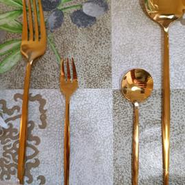 Wivico set posate 30 pezzi color oro in acciaio inossidabile 18/10 per 6 persone, cucchiaio, cucchiaino, coltello/forchetta/cucchiaio/forchetta dolce, lavabile in lavastoviglie. Possibilità di vederle su Roma. 3 confezioni da 13 euro cadauna. Oppure due o tre a 10 euro