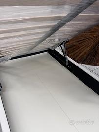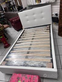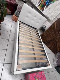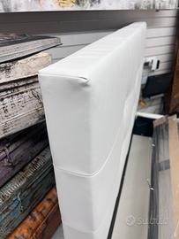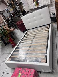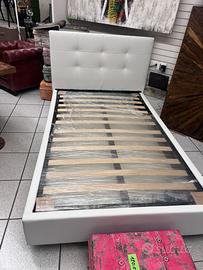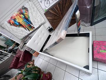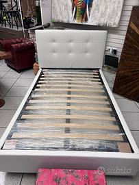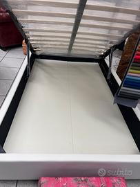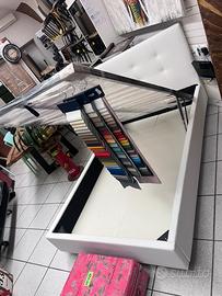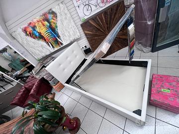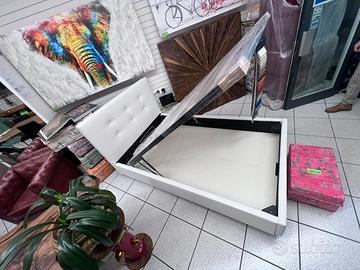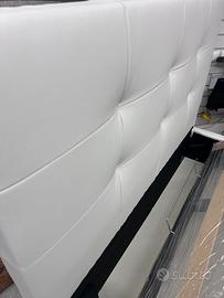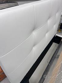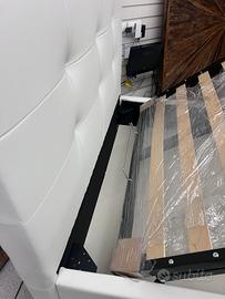 Letto con contenitore in ecopelle bianco neve, con pannelli in legno molto resistenti, un letto molto ben fatto con piedi h.12 di base per agevolare il