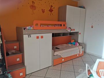 Non è semplice cameretta a ponte, completa anche di parete attrezzata x studiare. Con scrivania e sedia ergonomica.
