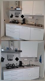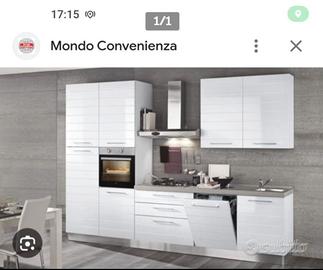 Svendo urgentemente cucina componibile bianco laccato lucido, in condizioni perfette, acquistata due anni fa da mondo convenienza, montata in casa non abitata e praticamente quasi mai usata. Regalo anche tavolo bianco allungabile (non presente nelle foto). Ho aggiunto, al posto di quelli di serie, il frigo, il forno e la lavastoviglie marchio candy. Si può montare tutta su un'unica parete da 330 lungh. x 240 h oppure con corpo forno e corpo frigo separati (come l'ho montata io). I singoli mobili, montabili tutti separatamente, misurano: cassettiera (sotto piano cottura) 90 cm, lavastoviglie 60 cm, lavandino 60 cm, armadio frigo 60 cm e armadio forno 60 cm. La cucina si trova a piazza Cavour e ho ugenza di venderla entro il 9 marzo, giorno in cui iniziero' i lavori di ristrutturazione della casa. Smontaggio e trasporto a carico dell'acquirente. Per vederla: 329.2620231