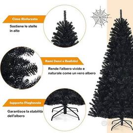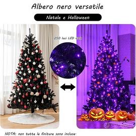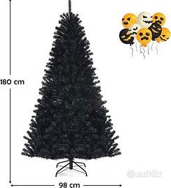 NUOVO Albero di Natale Artificiale 180 cm, Albero Nero di Halloween, Illuminato a 250 Luci Incorporate, 680 Rami Folti in PVC, Supporto in Metallo, Decorazione da Interno ed Esterno