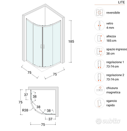 Box doccia 75X75 cm semicircolare scorrevole con vetro serigrafato e profilo bianco 185h - Lite NUOVO ANCORA IMBALLATO Prezzo Acquisto 130€