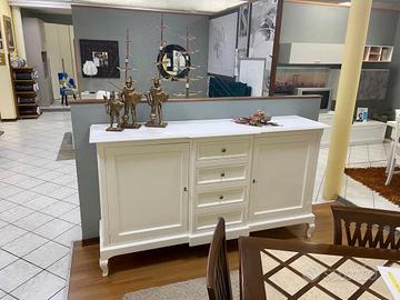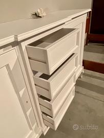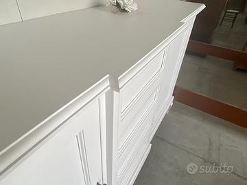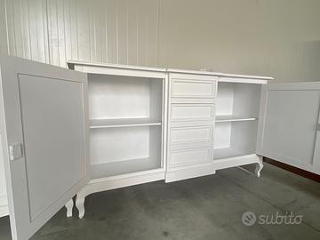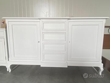 PROPONIAMO UN BELLISSIMO CREDENZONE CON 2 ANTE E 4 CASSETTI, REALIZZATO DI VERO LEGNO IN FINITURA BIANCO LACCATO.