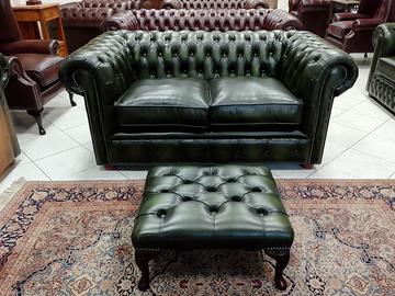 Nuovo divano 2 posti chesterfield modello club inglese originale in pelle bovina di pieno fiore verde anticato ( Antique Green ).
