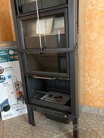 Focolare interamente in ghisa di elevato spessore, con sistema della Doppia Combustione per ridurre le emissioni nocive ed aumentare la resa,sistema brevettato VDF per la perfetta gestione del tiraggio con risparmio sul consumo di legna, portina in vetro ceramico a scomparsa totale. Completi di braciere portaceppi e bocchette regolabili con relativi raccordi e prolunga flessibile. Dotato di due portine in vetro ceramico; una ad apertura a scorrimento ed una battente per la pulizia del vetro.