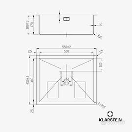 Dimensioni vasca 50x40cm, dimensioni con flange 55x45cm.
