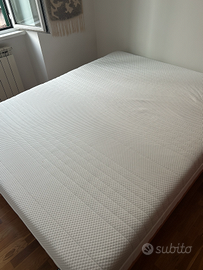 Struttura letto matrimoniale/queen in legno massello (Rete Dorsal dal marchio Possedoni) e materasso matrimoniale IKEA ÅNNELAND. Usato solo per 3 mesi, protetto con un coprimaterasso e in un appartamento pulito e non fumatori. Nessuna macchia o segno di usura, in perfette condizioni. Misure 160 x 200 cm. Ritiro in zona Pigneto, oppure spedizione a cura da te. Valore originale 1100 euro.