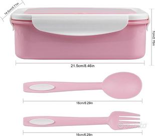 2 strati, scatola interna facile da estrarre, scatola di Bento con 3 scomparti e set di posate, il cibo può essere trasportato in modo pulito separato e preparato.