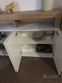 Colore: bianco lucido con ripiano effetto legno.