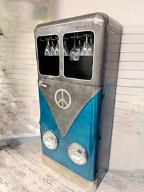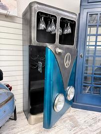 Oggi vi proponiamo mobile bar combi con portanottiglie e portacalici rocesciati, interamente in metallo verniciato a mano, con fanali anteriori che possono essere illuminati da led, elegante e molto rifinito bene !!!
