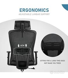 NUOVO Sedia da Ufficio, Sedia Ufficio Ergonomica, Sedia Ergonomica con Poggiatesta Regolabile, Bracciolo, Supporto Lombare, Regolazione in Altezza e Oscillazione a 90°-120°, Cuscinetto 150KG