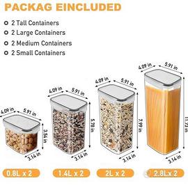 Set vasi da 8 - questo prodotto contiene scatola da cucina con 8 (2.8L x2; 2L x 2; 1.4L x 2; 0.8L x 2). La dimensione dei barattoli di stoccaggio è (2L, 11 x 6 x 4 pollici) (2L, 8.1 x 6 x 4 pollici) (1.4L, 6 x 6 x 4 pollici) (0.8L, 3.5 x 6 x 4 pollici)